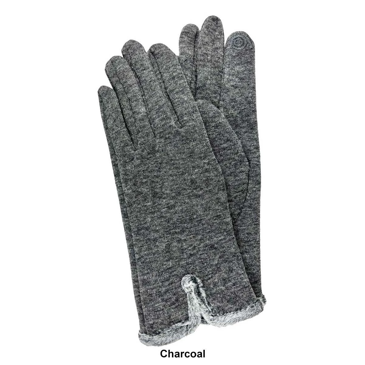 Hands stay toasty warm wearing these Adrienne Vittadini fleece gloves with faux fur hem and touchscreen compatibility.