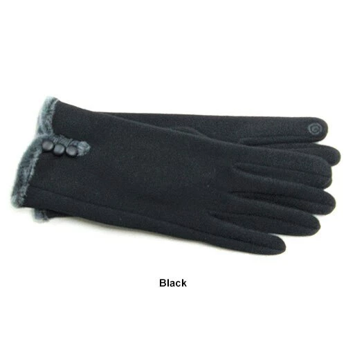 These Womens Adrienne Vittadini soft, stretch fleece touchscreen gloves offer faux fur detail at hem, 3 button detail on back, and the index finger and thumb are fully touchscreen capable with all electronic devices.