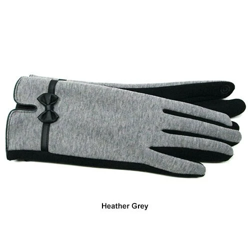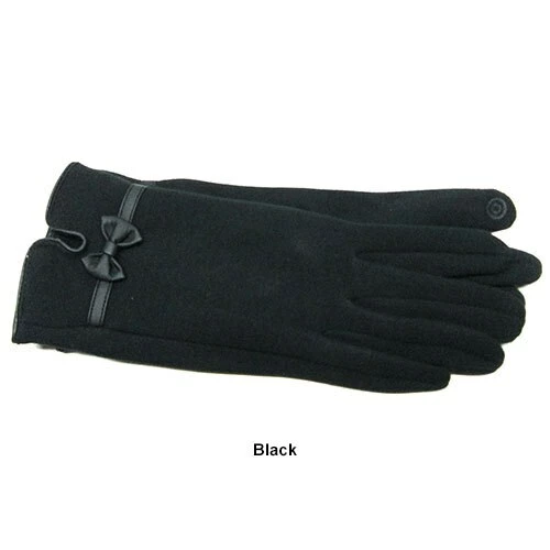 These Womens Adrienne Vittadini soft, stretch fleece touchscreen gloves offer a contrast color palm and a bow on the back. The index finger and thumb are fully touchscreen capable with all electronic devices.