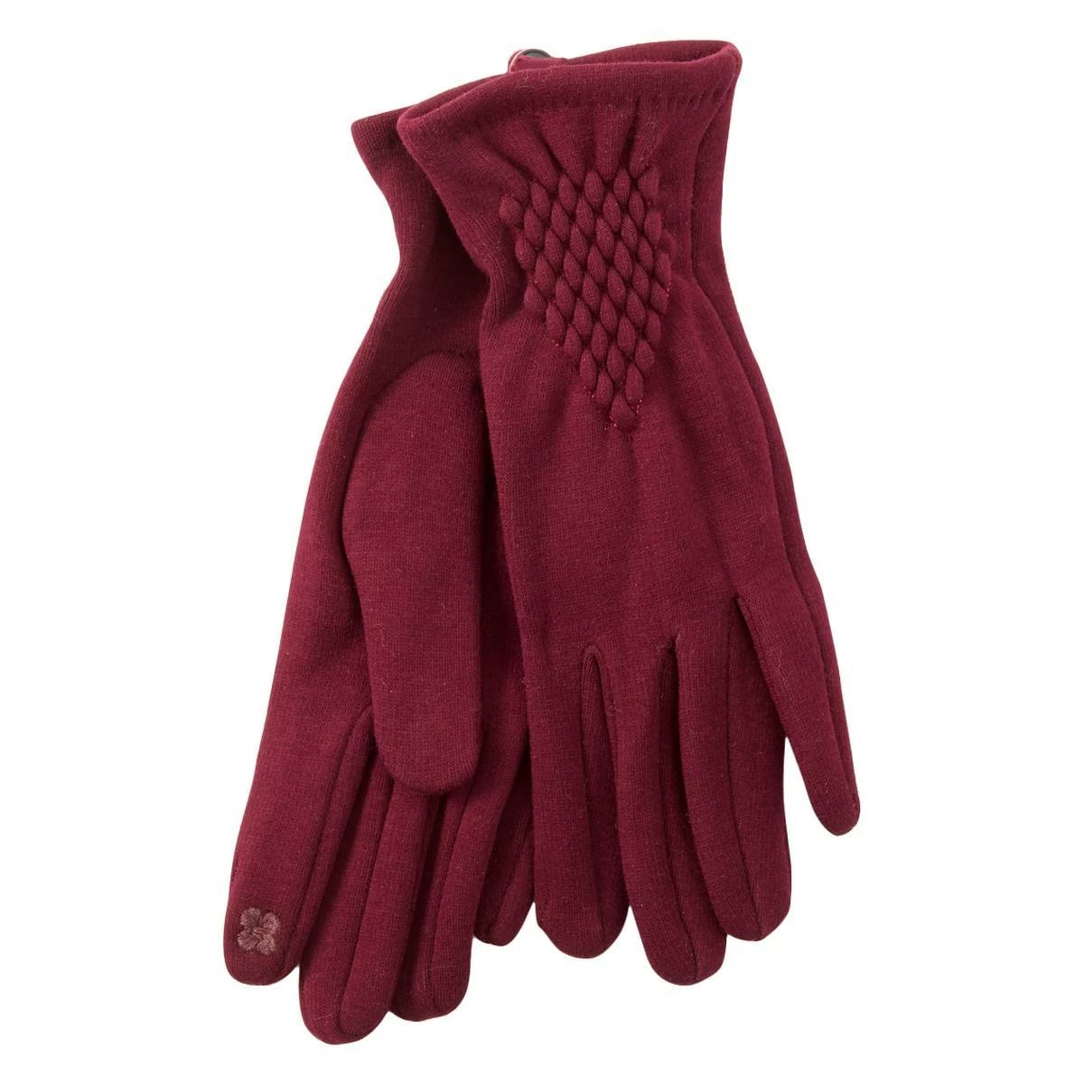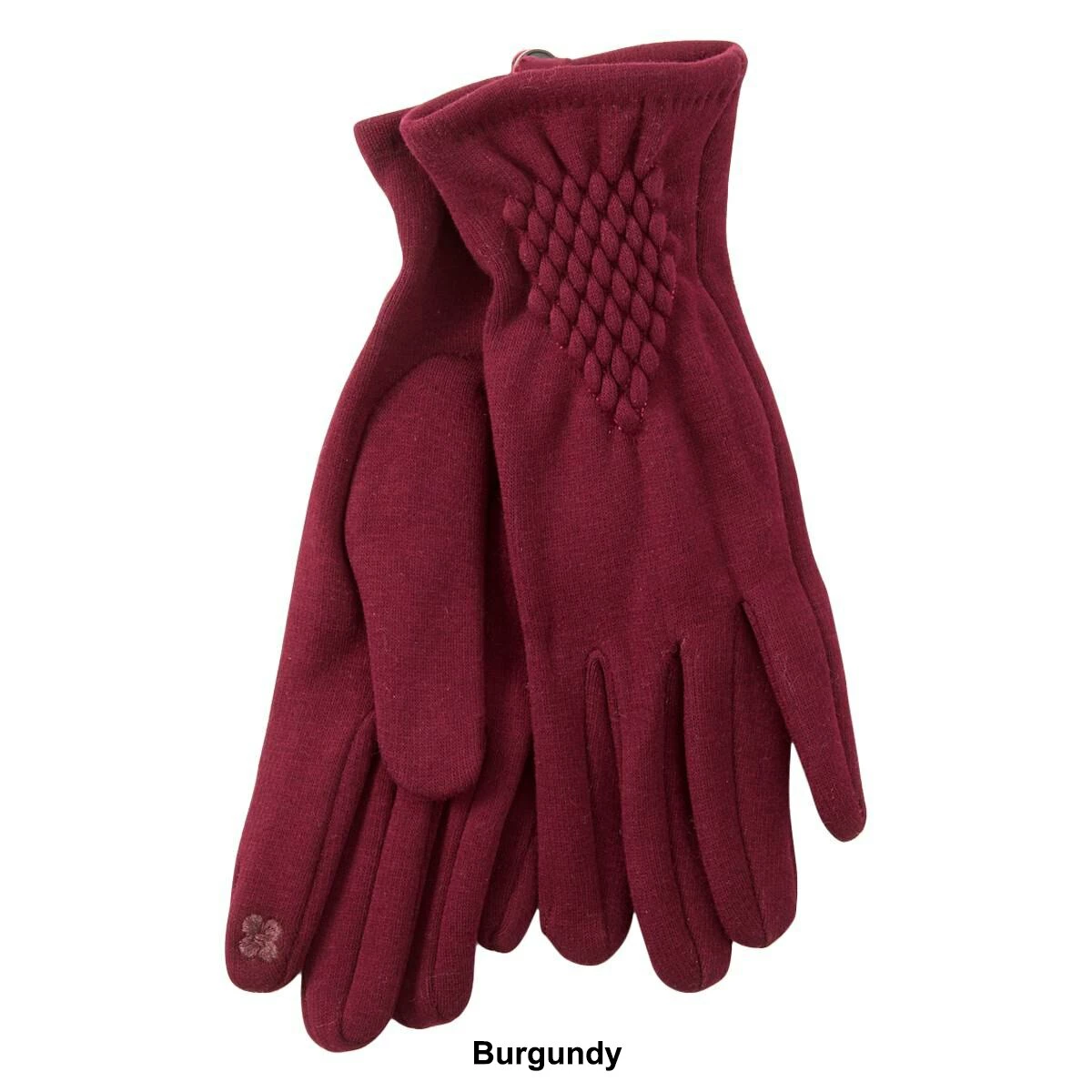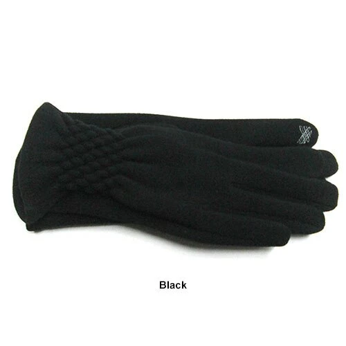 These Womens Adrienne Vittadini stretch fleece ruched gloves feature touchscreen technology and a diamond pattern.