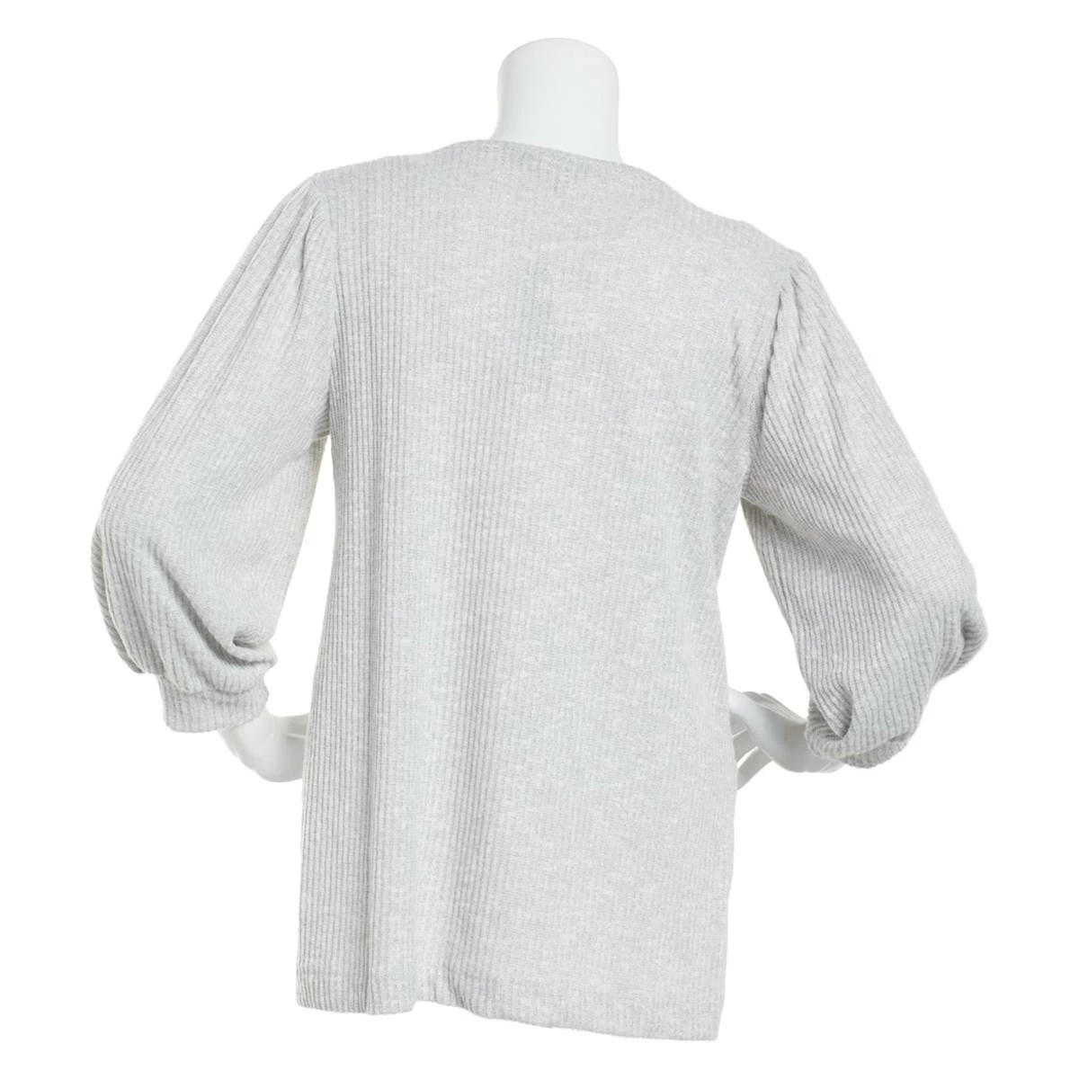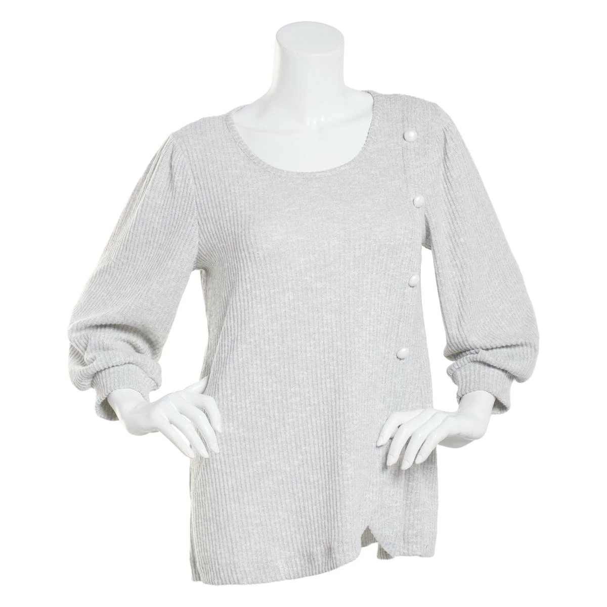 The Womens Adrienne Vittadini asymmetrical pearl hacci sweater features a round neckline and 3/4 sleeves. Great for a dinner date night in those cold temperatures. Grab some dark denim and bold booties – you’re golden.