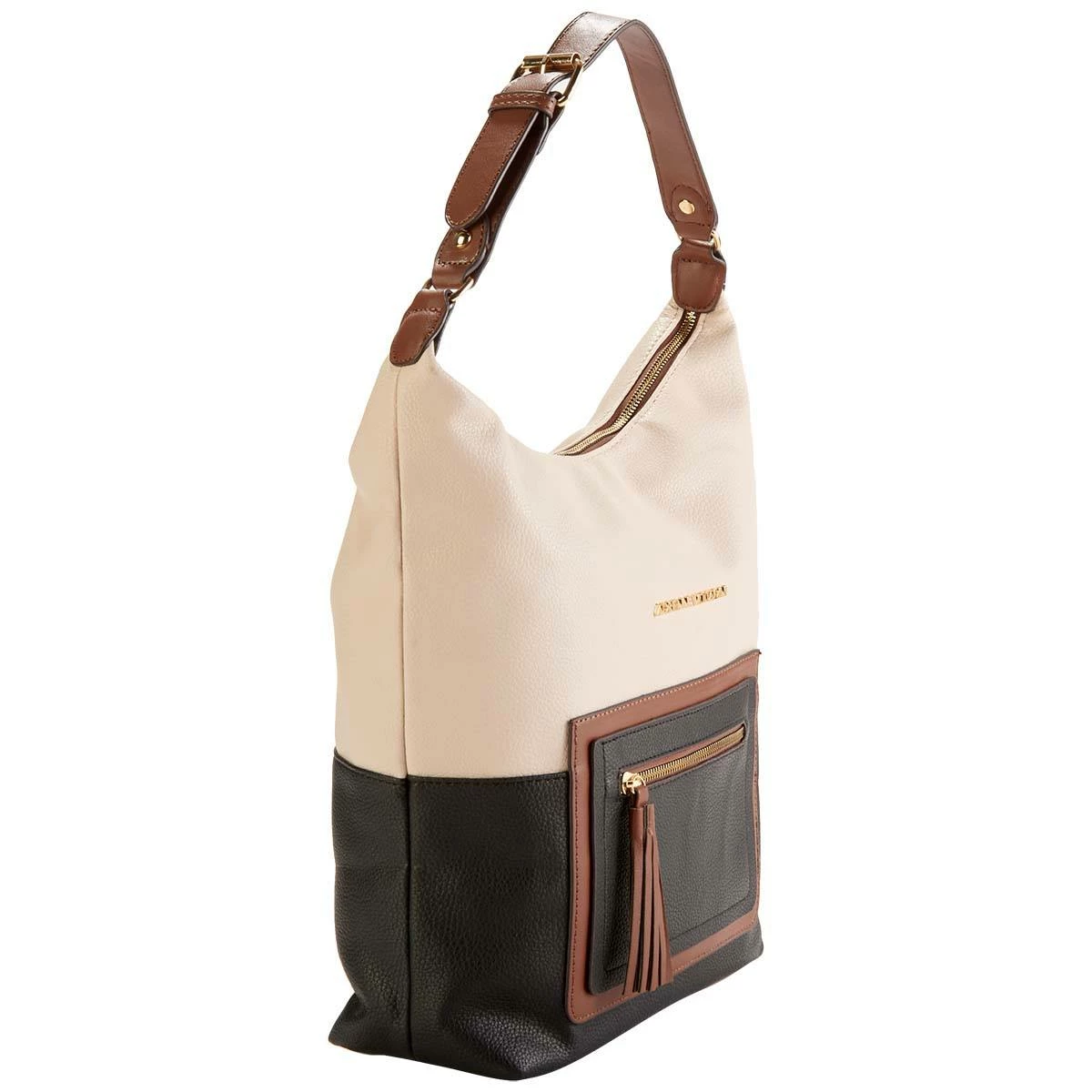 Style up your wardrobe with the Adrienne Vittadini color block hobo crossbody with tassel. This hobo features a pebble grain finish and zipper closure. Great option for every day or for work!