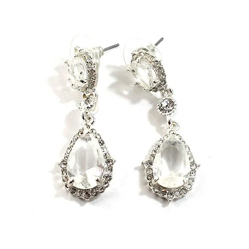 The Adrienne Vittadini silver-tone and clear crystal, oval double drop earrings are perfect for a fancy occasion.