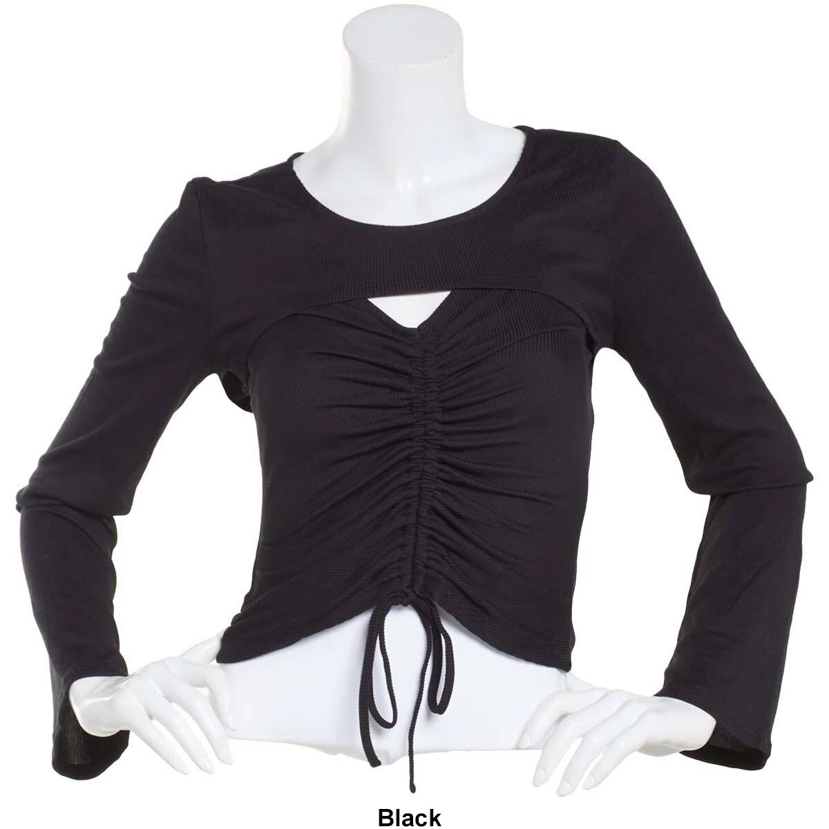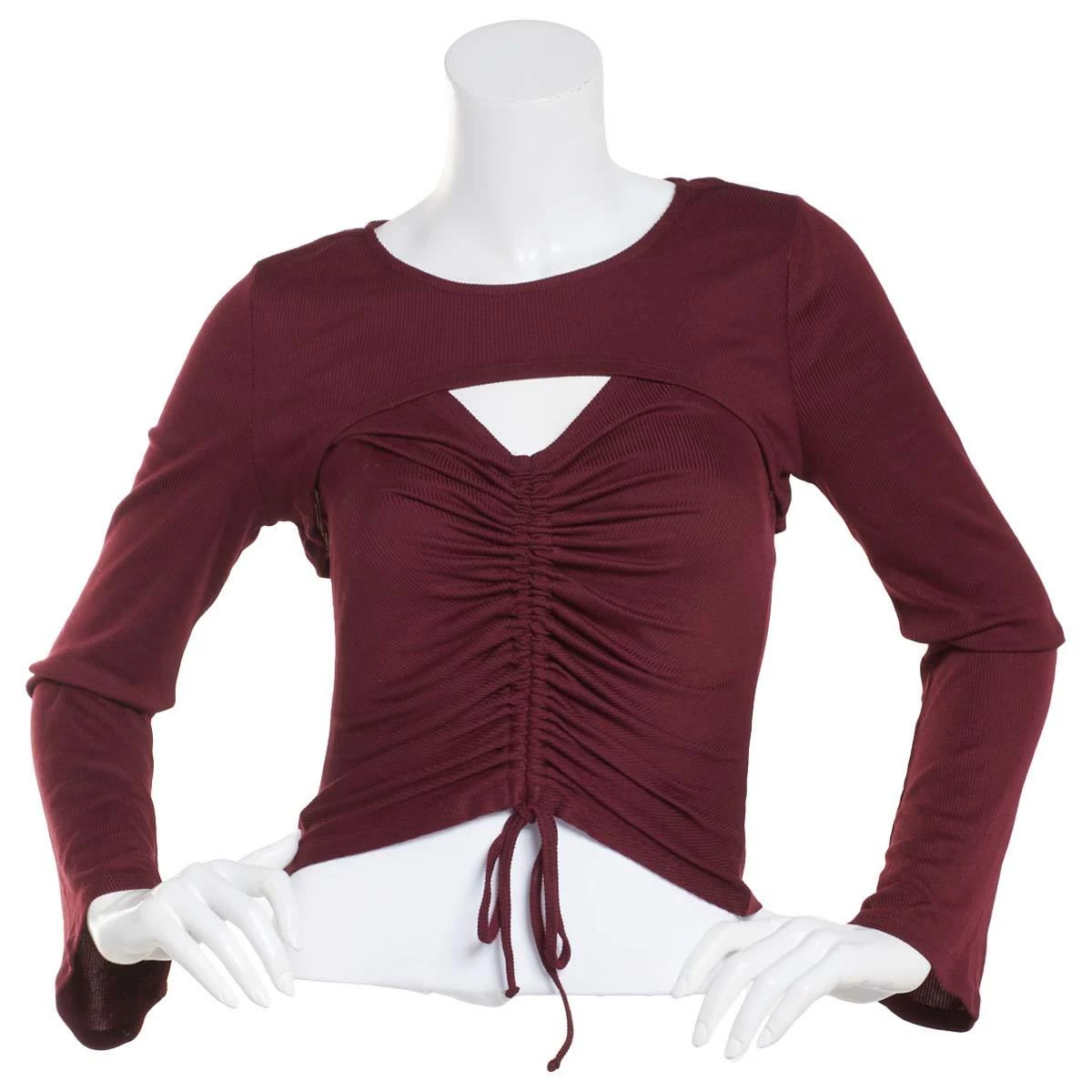 Stay flawless wearing this Juniors Almost Famous⢠2 fer rib bolero cami features a v neckline and ruched front with a tie and long sleeves.