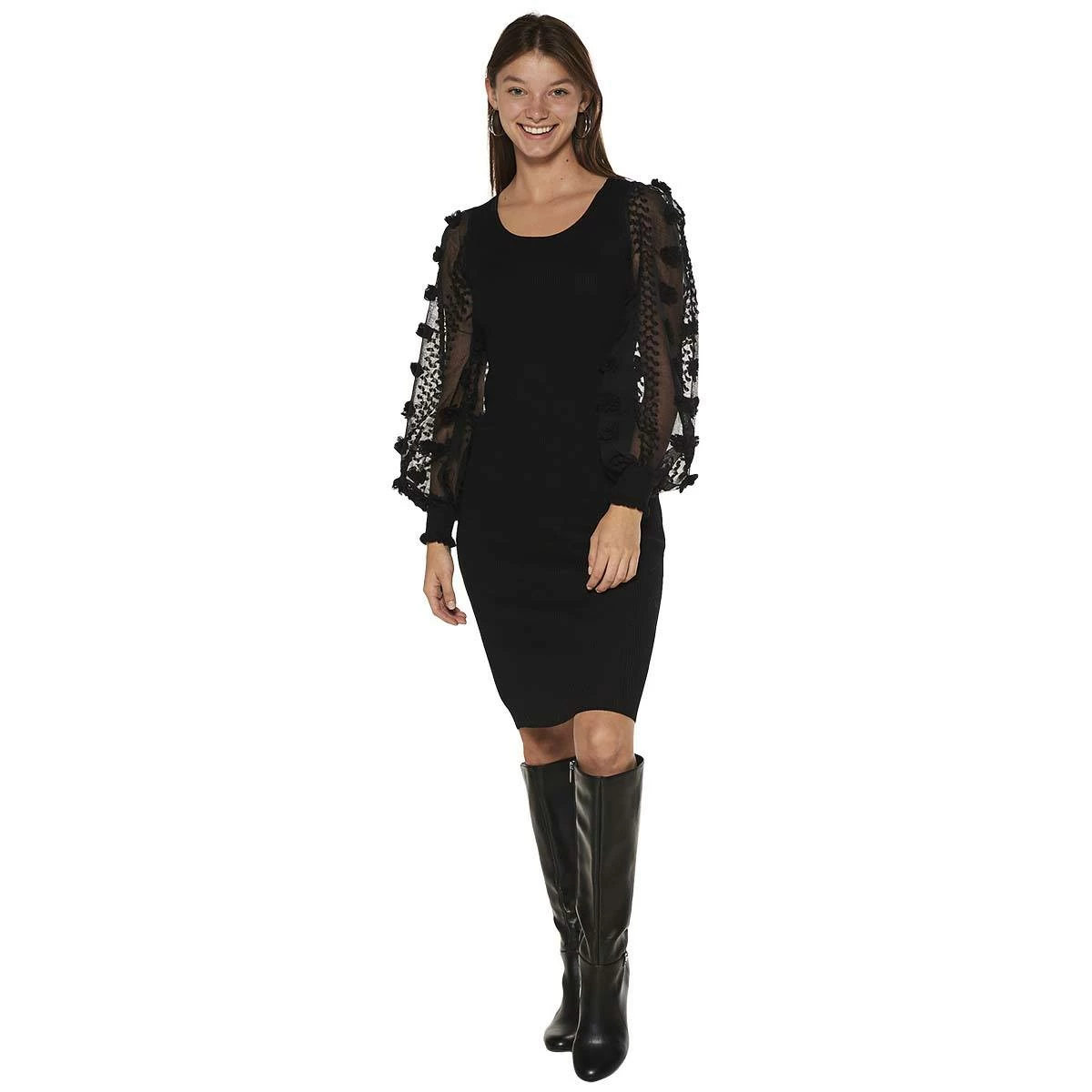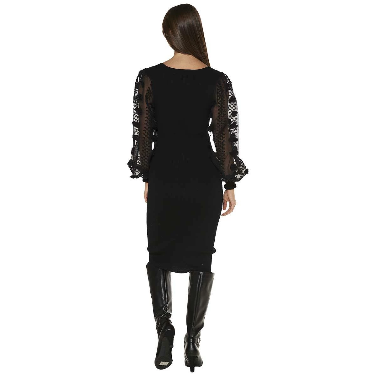 Show off a flattering silhouette in this Juniors Almost Famous™ midi sweater dress features a scoop neckline and long 3d floral sleeves. Look stunning at any special event.