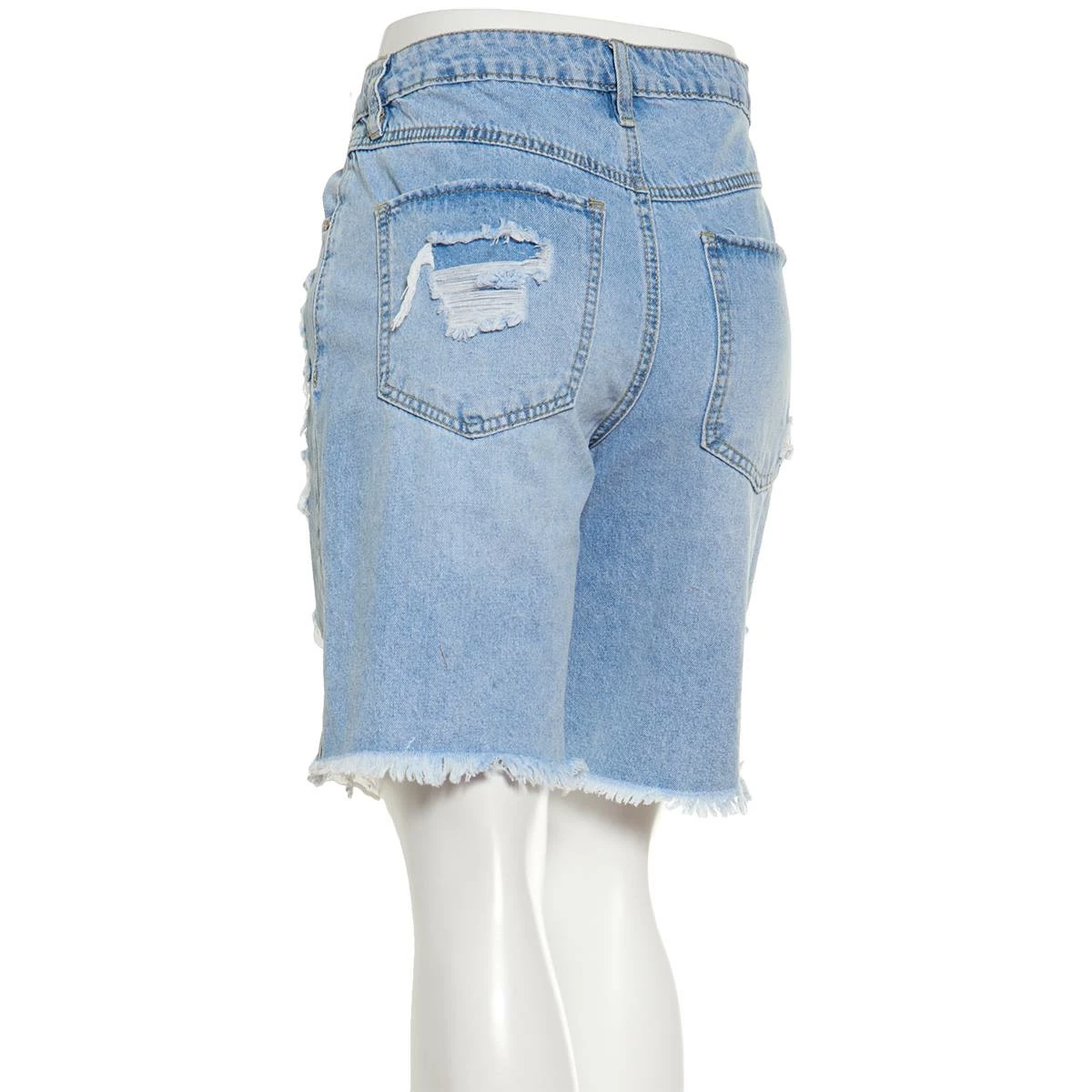 Pair the Juniors Almost Famous™ bermuda shorts with your favorite sneakers for a cute and comfy look. These mid rise denim shorts feature a classic five-pocket construction with fraying and distressed detail.