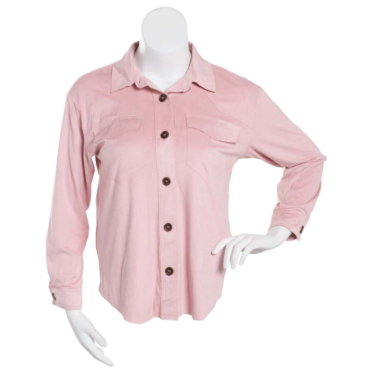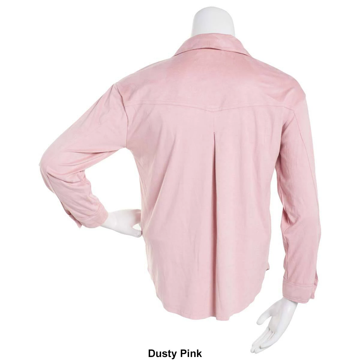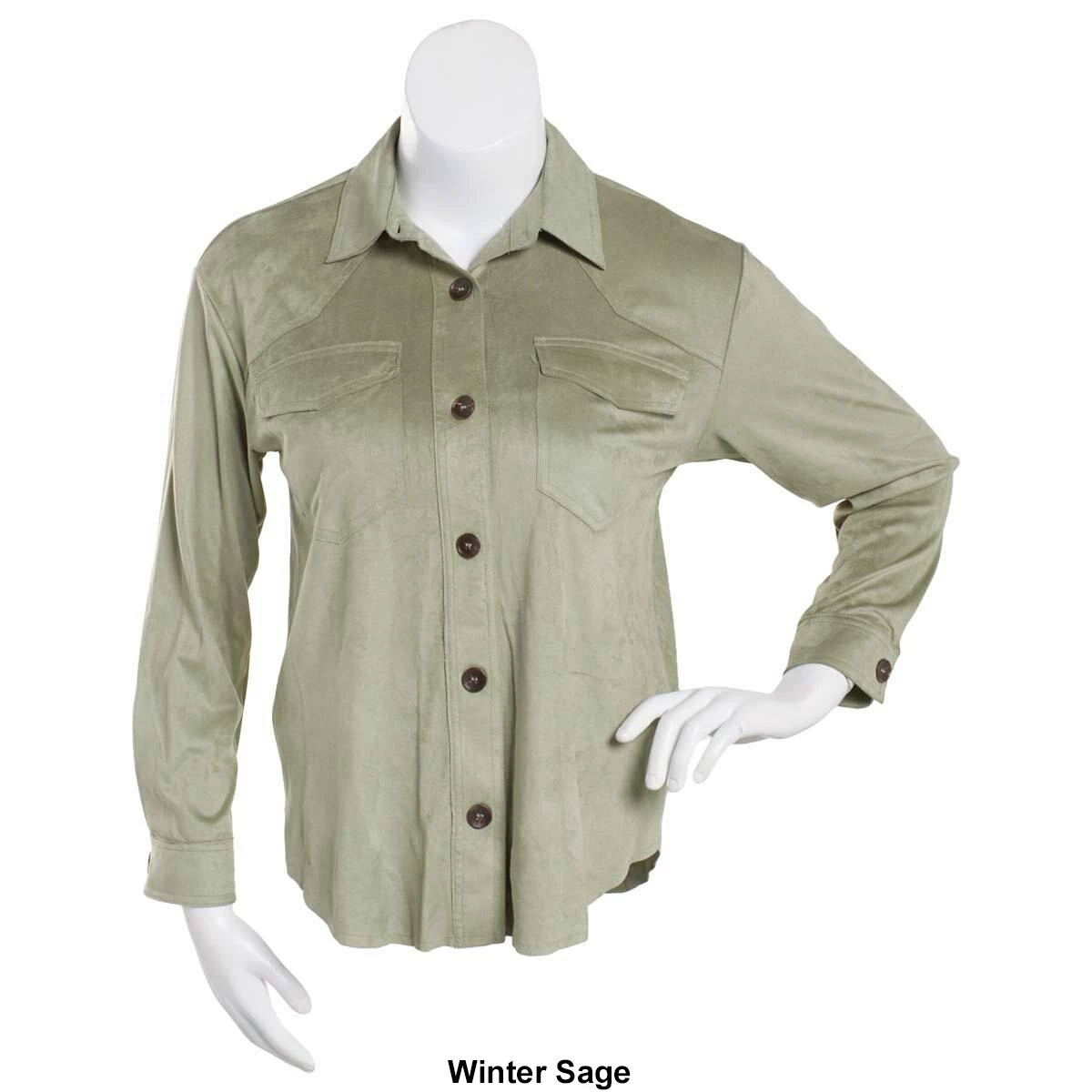 Liven up your casual style in this Juniors Almost Famous™ shacket featuring a chest flap pocket, basic collar, button front, sleeve closures, and long dropped sleeves.