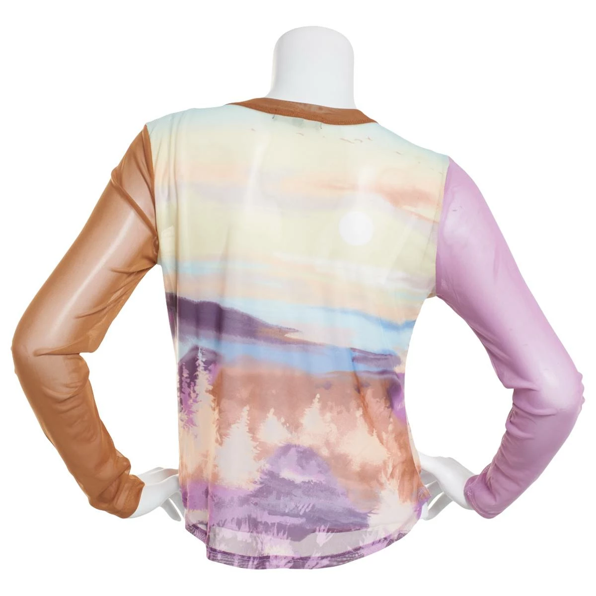 Liven up your style with this Juniors Almost Famous™ desert printed mesh shirttail placement top. This features a crew neckline and long sleeves. Layer this top with any cami.
