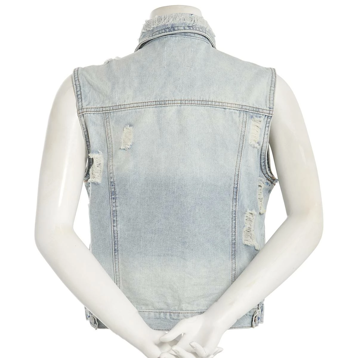 This sleeveless Juniors Almost Famous⢠destructed denim vest looks great when layered over tanks and t-shirts.