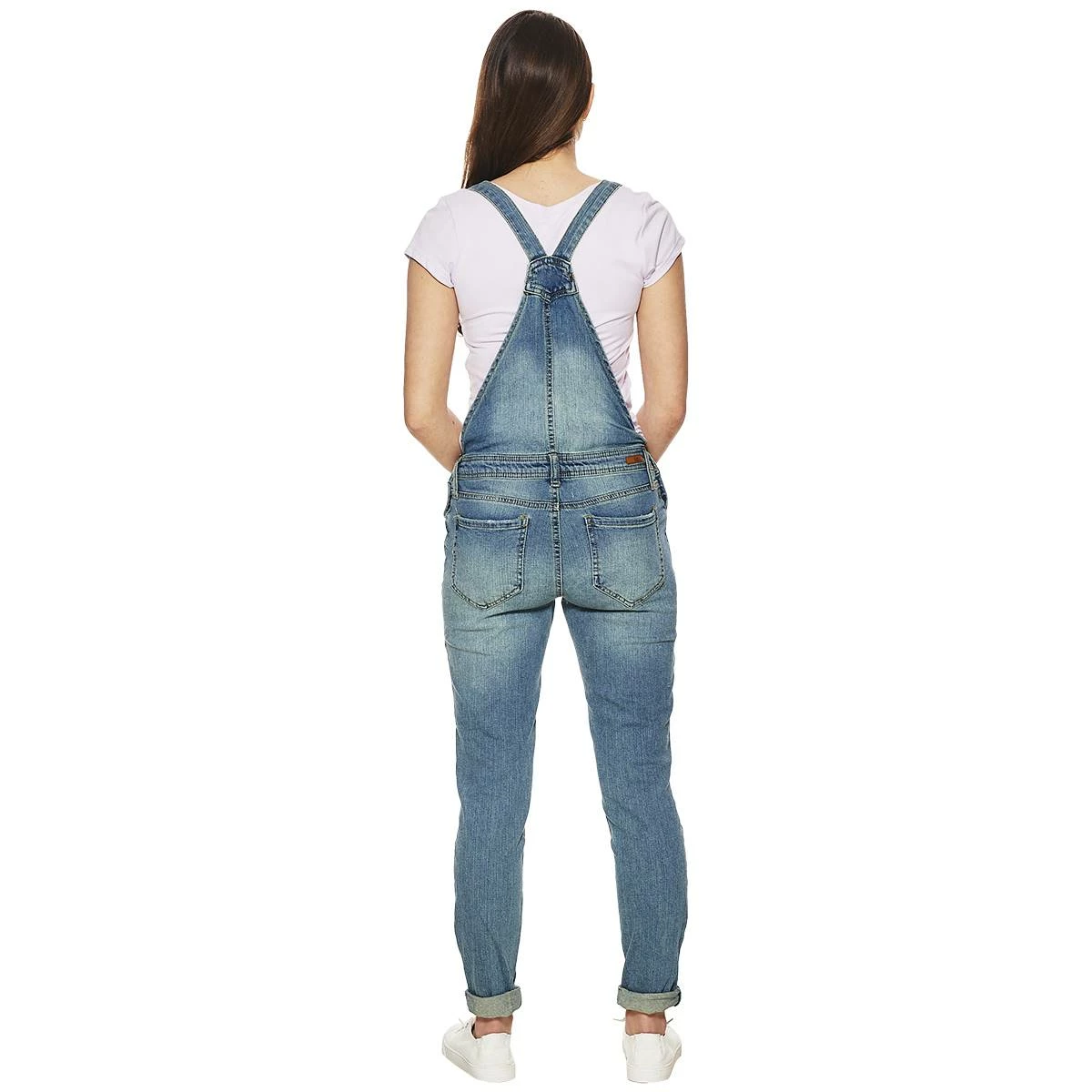 Wear your favorite top under these Juniors Almost Famous™ distressed overalls. These straight fit bottoms feature adjustable metal snap shoulder straps, button up sides, a racerback, and slightly distressed legs with rolled cuffs.