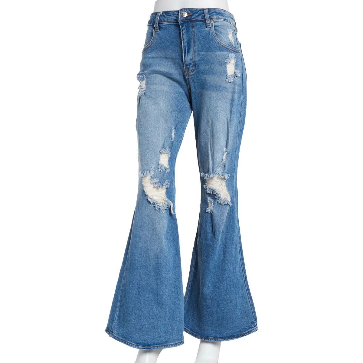 Pair this Juniors Almost Famous™ hi rise destructed flare jeans with your favorite top. These jeans feature 4 pockets and a single button zipper closure.