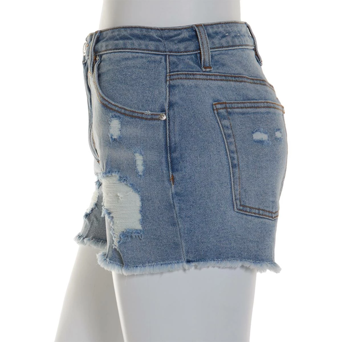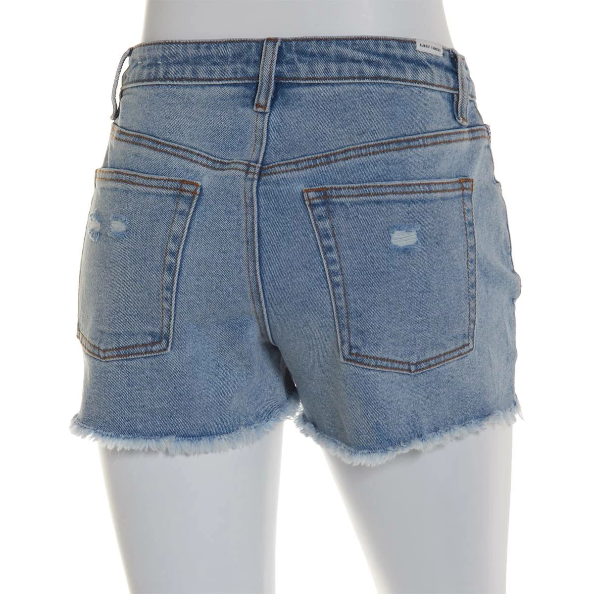 Pair the Juniors Almost Famous™ mom shorts with your favorite top for a laid back look. These high rise denim shorts feature a classic five-pocket construction with fraying and distressed detail.