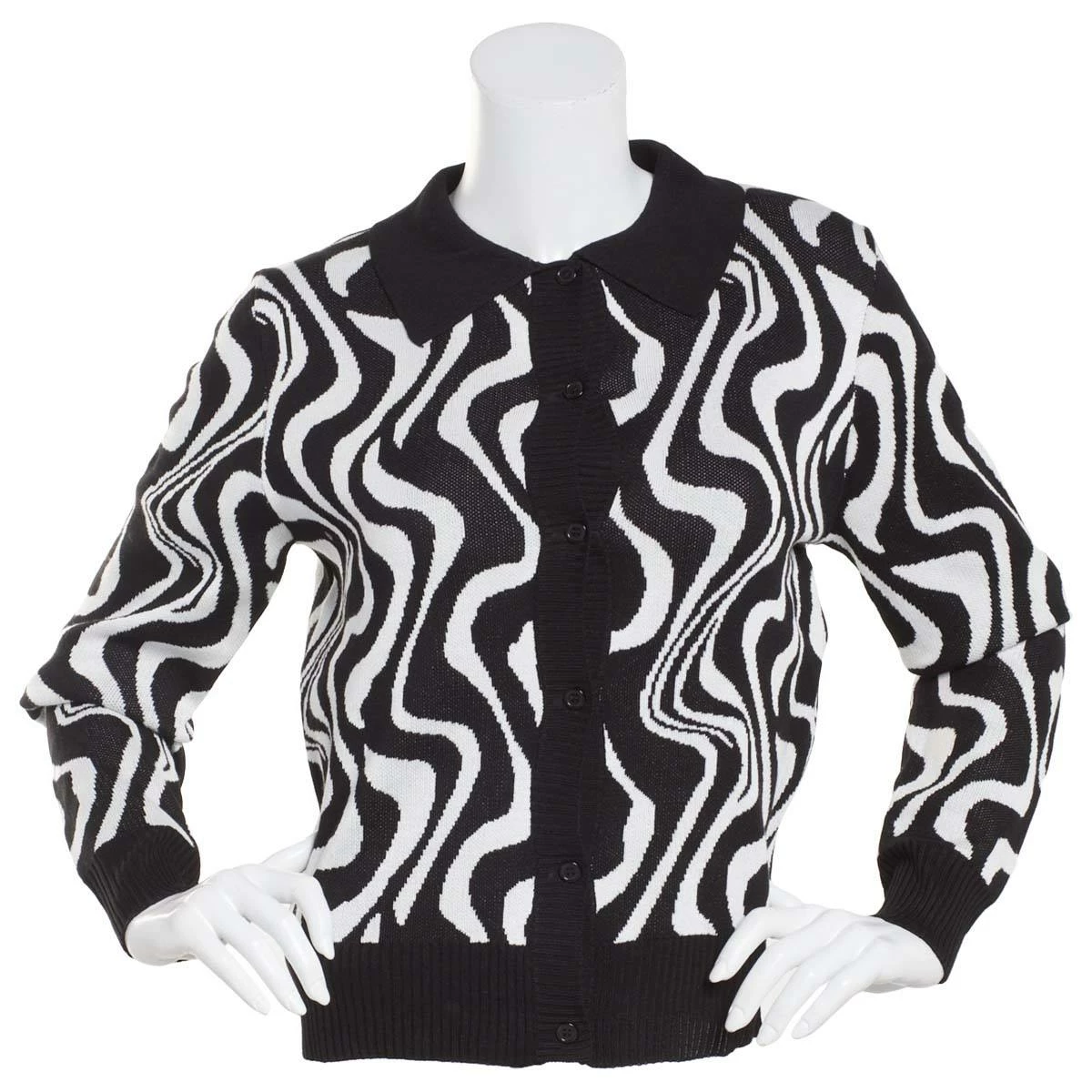 Make getting dressed easy and stylish by wearing this Juniors Almost Famous™ jacquard geo wave crop cardigan that features a button front with long sleeves.