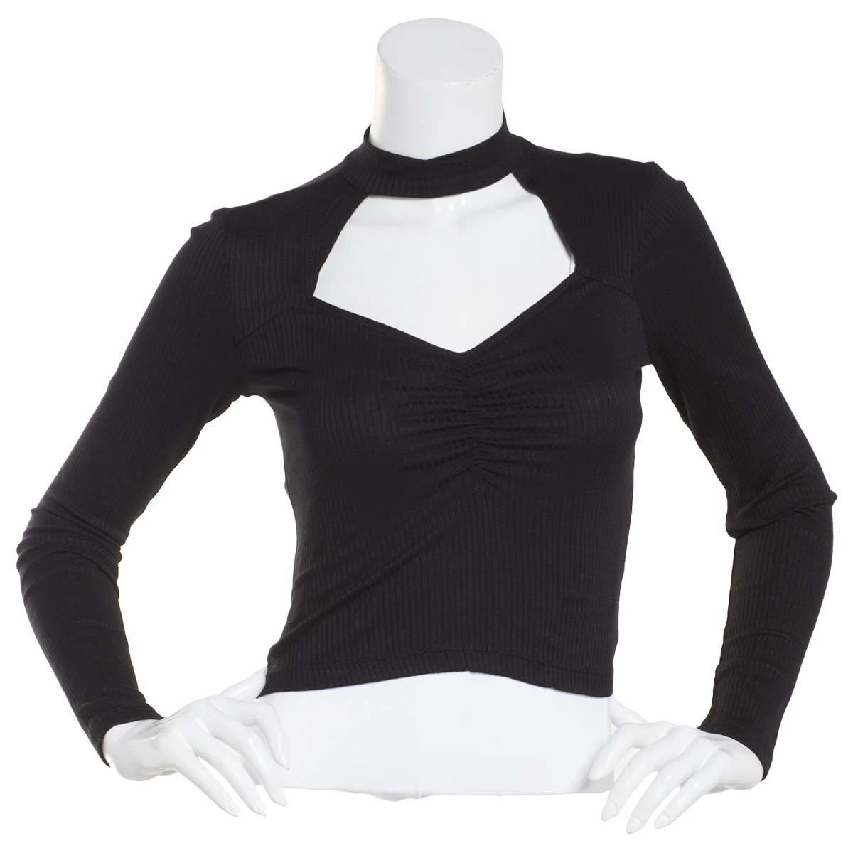 Fun fashion is here with this Juniors Almost Famous™ front bust ruched top is a sexy peek-a-boo cutout that’s sure to wake up your wardrobe with long sleeves and a mock neck. Slip it on with some skinny jeans and you’re ready for a night out.