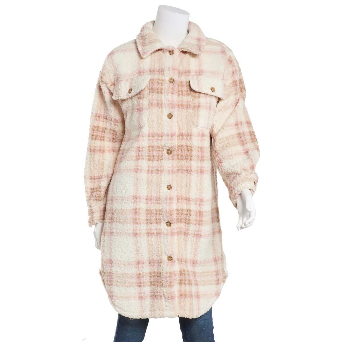 Satisfy your stylish feeling with this Juniors Almost Famous™ natural long jacket featuring a button front and long sleeves and chest pockets.