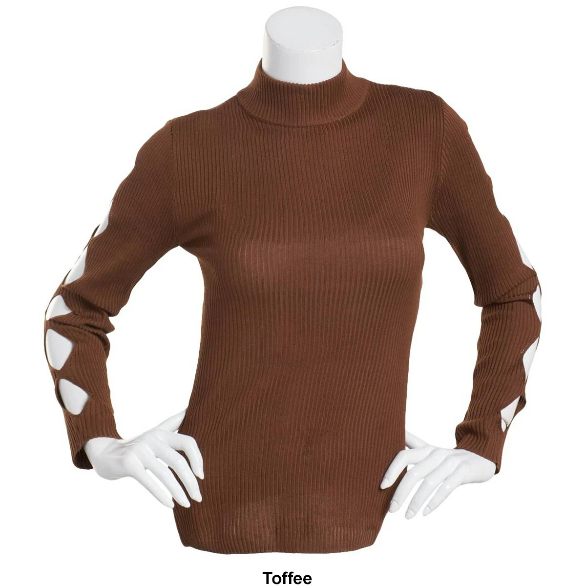 Set up your style with this Juniors Almost Famous™ rib sweater. This top features a mock neck with long cut-out sleeves. Perfect to wear with your favorite pair of jeans.
