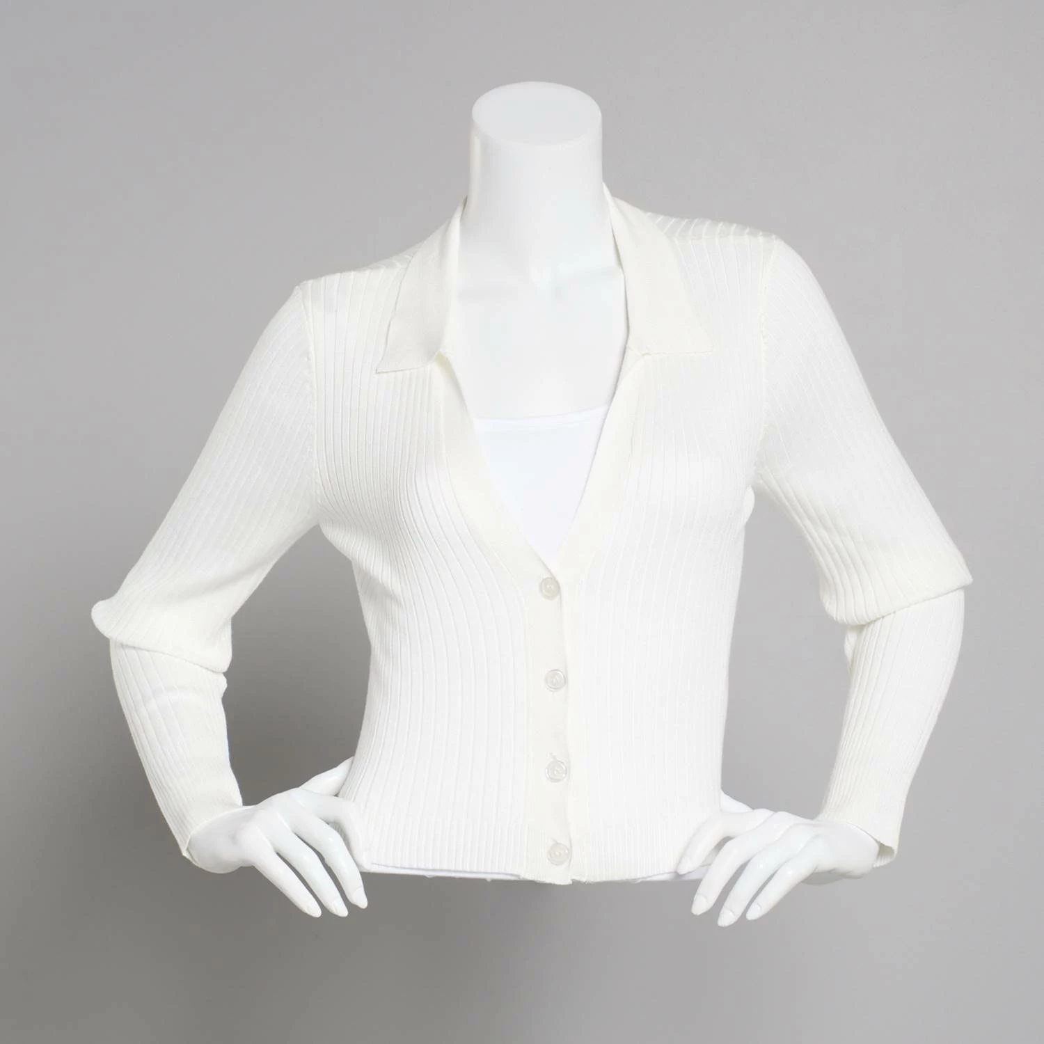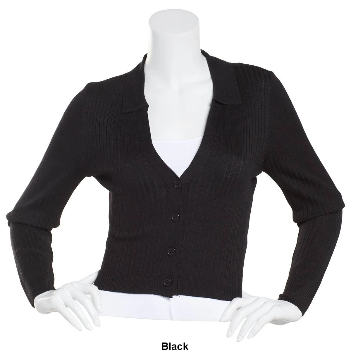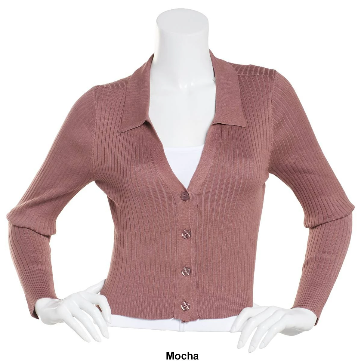 style this look by layering this Juniors Almost Famous™ rib Johnny collar cardigan that features a split neckline button front and long sleeves.