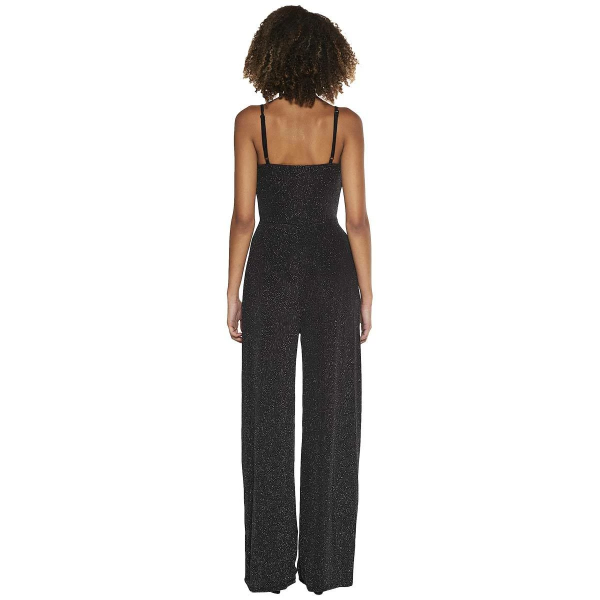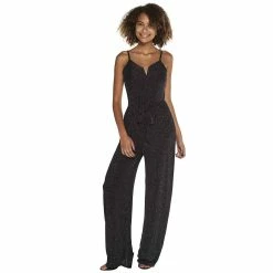 Add a little glitz to your casual wardrobe with this Juniors Almost Famous™ sleeveless split neck Lurex jumpsuit that is perfect for an evening out.
