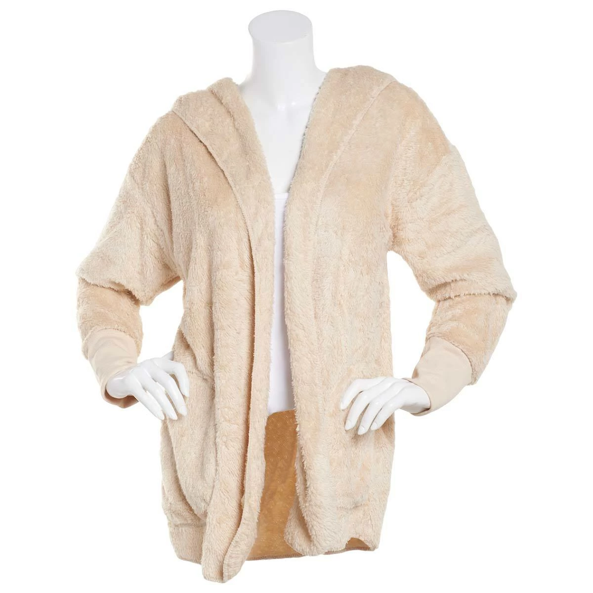Upgrade your wardrobe with this Juniors Almost Famous™ solid Sherpa open cardigan hoodie that features pockets and a zipper front.
