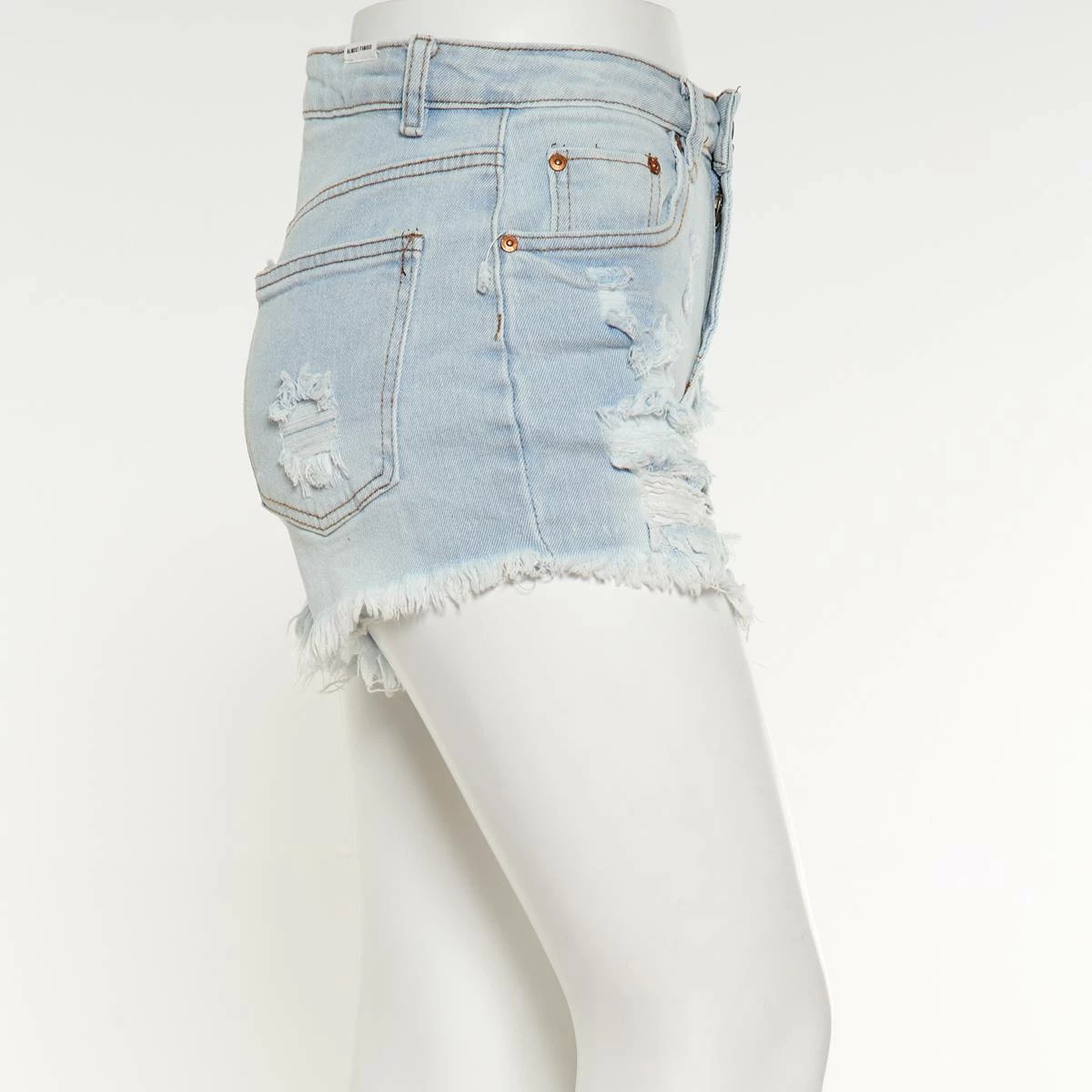 Loving warm weather is even easier when you have these Juniors Almost Famous™ super destructed fray hem shorts. It offers a high rise, zipper and button closure at from with belt loop.