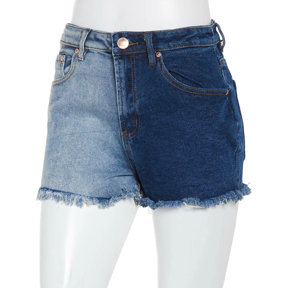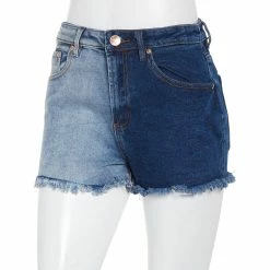 Show off your trendy style wearing these Juniors Almost Famous™ two-tone fray hem mom shorts. These denim bottoms feature a button and flip fly closure, belt lops, and classic five pocket dsign.