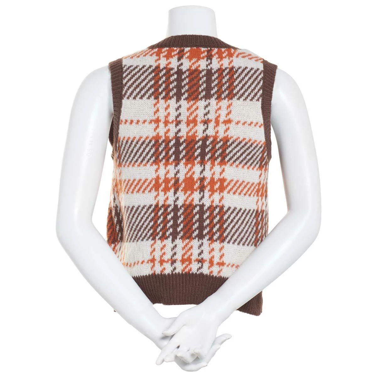 These charming Juniors Almost Famous™ pattern sweater vest is updated with all-over plaid and finished with a trend-forward v-neckline.
