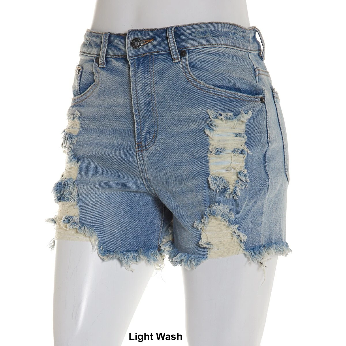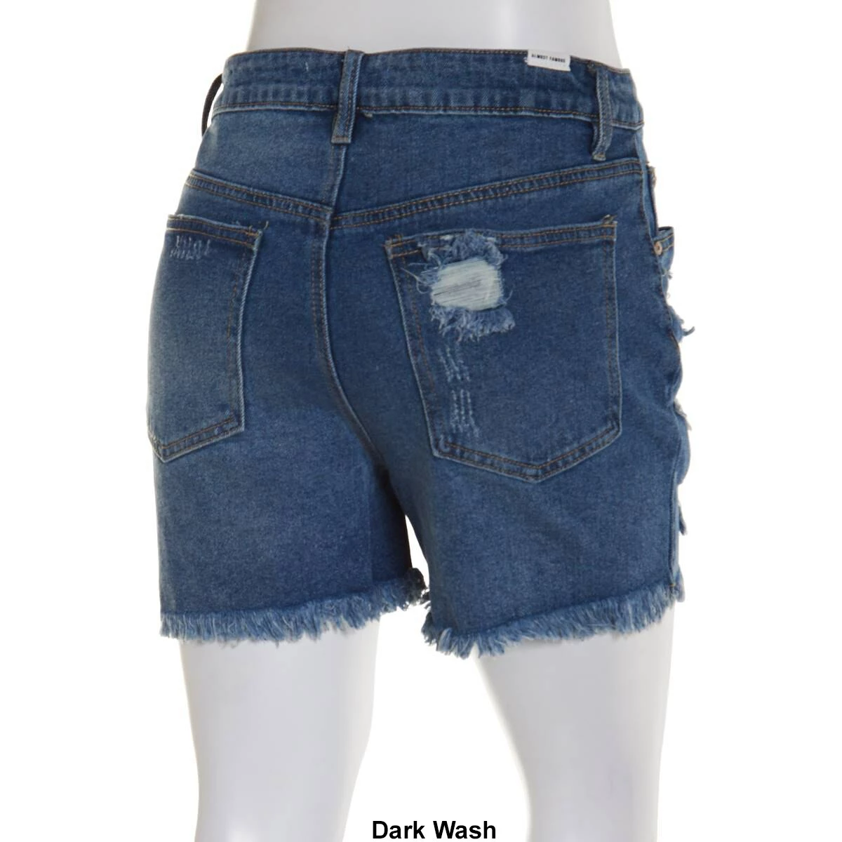 Keep up with trends with the Juniors Almost Famous™ washed destructed fray hem denim shorts. These high rise shorts feature a button closure, zip fly, and belt loops.