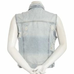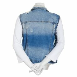 Best Pirce 🔥 Almost-Famous Clothing Juniors Almost Famous™ Destructed Denim Vest – Light Wash 🔥