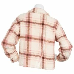 Hot Sale 🎁 Almost-Famous Clothing Juniors Almost Famous™ Sherpa Crop Shacket – Rose/Multi 🤩