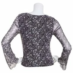 Hot Sale 🎁 Almost-Famous Clothing Juniors Almost Famous™ Floral Mesh Bell Sleeve Picot Trim Blouse 🌟